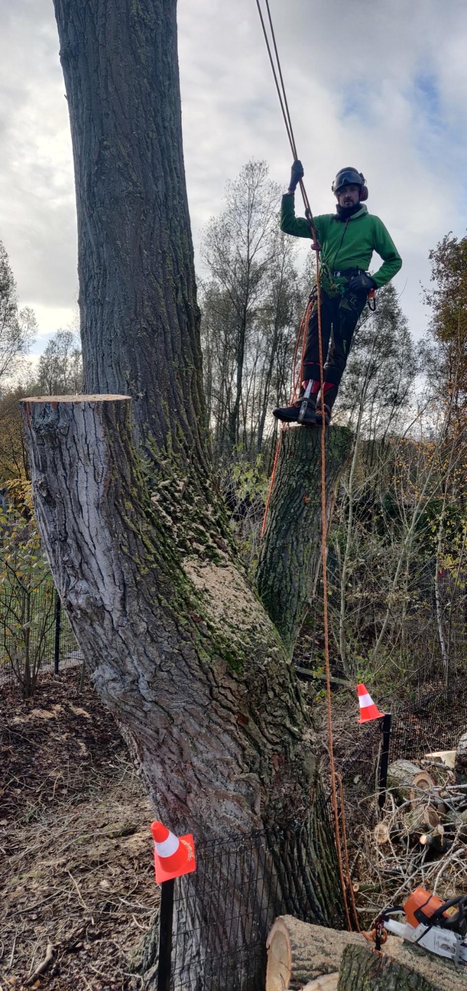 In dat geval kunnen we de boom demonteren. Dan laten we de takken en stamdelen aan een vangtouw gecontroleerd zakken.